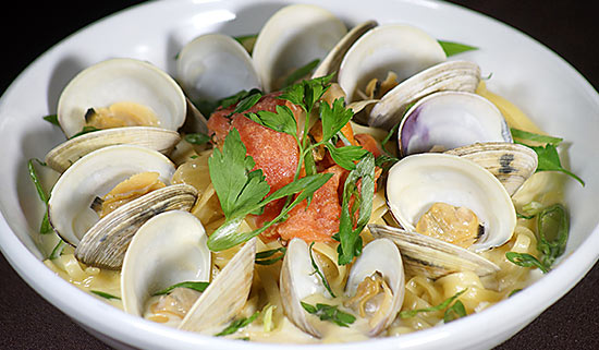 Little Neck Clams -or- Mussels, Crispy Capers, Linguini, Clam and White Wine Lemon Thyme Cream Sauce