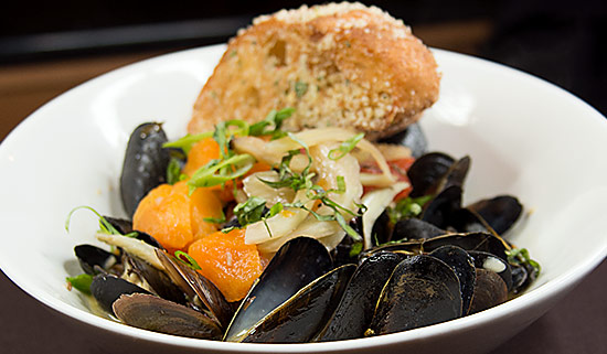 Mussels, Rustic Baguette, White Wine Fennel Broth