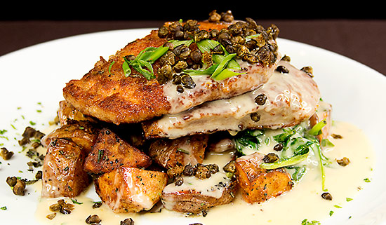 Roasted Potato, Wilted Spinach, Crispy Capers, Lemon Butter Sauce