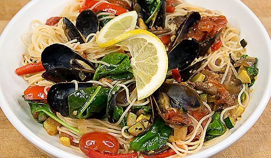 Fresh Seasonal Vegetables, Capellini Pasta, Roasted Garlic Olive Oil